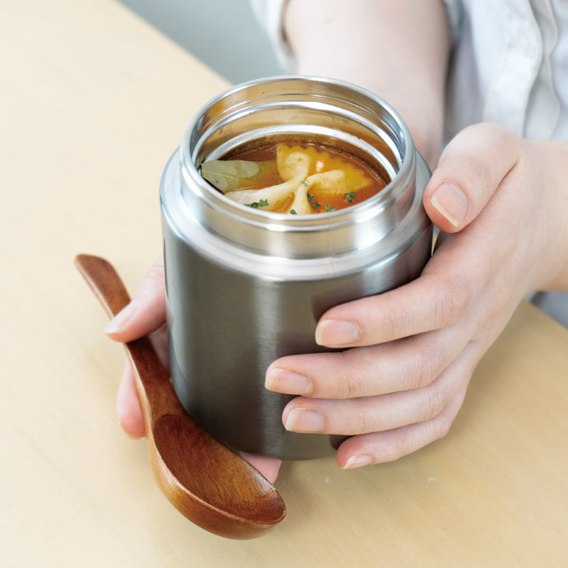 保温・保冷力がありながら、お手入れしやすいスープジャー。年齢や男女を選ばないシンプルなデザイン。忙しい朝も予熱調理でおいしく時短。パッキン1つでお手入れラクラク。