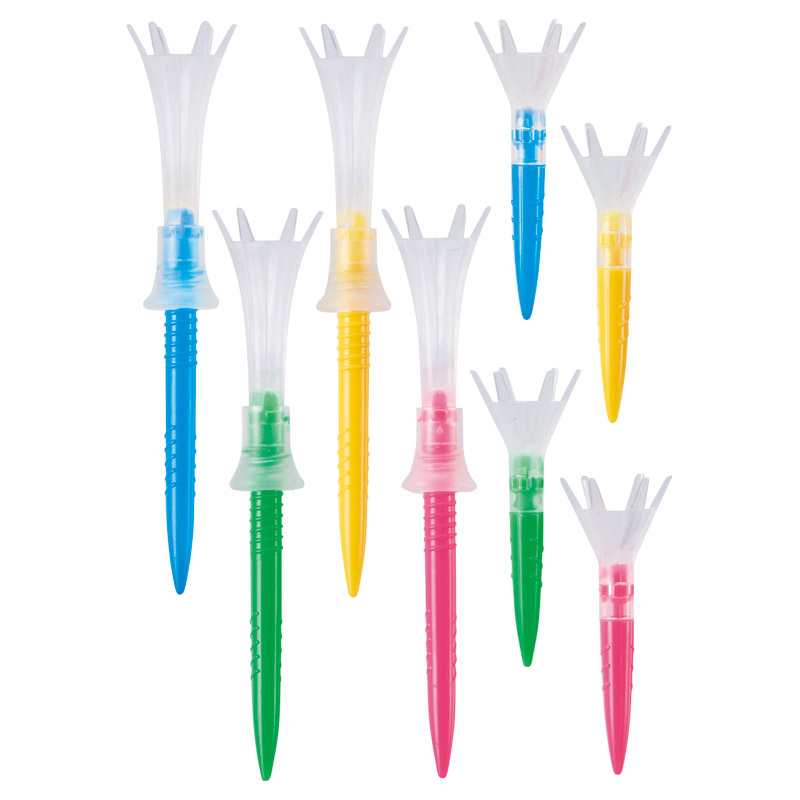 アジャスターを回して高さを約40~50㎜の範囲で調節可能、常に同じ高さでのドライバーショットが可能です。本体上部は柔らかい素材のためインパクト時の抵抗が少なく、振り抜きやすく、ティーも折れにくくなっています。EFD(Easy to Find Design)を採用し、ショット後にティーが飛んでも見つけやすいデザインとなっています。
