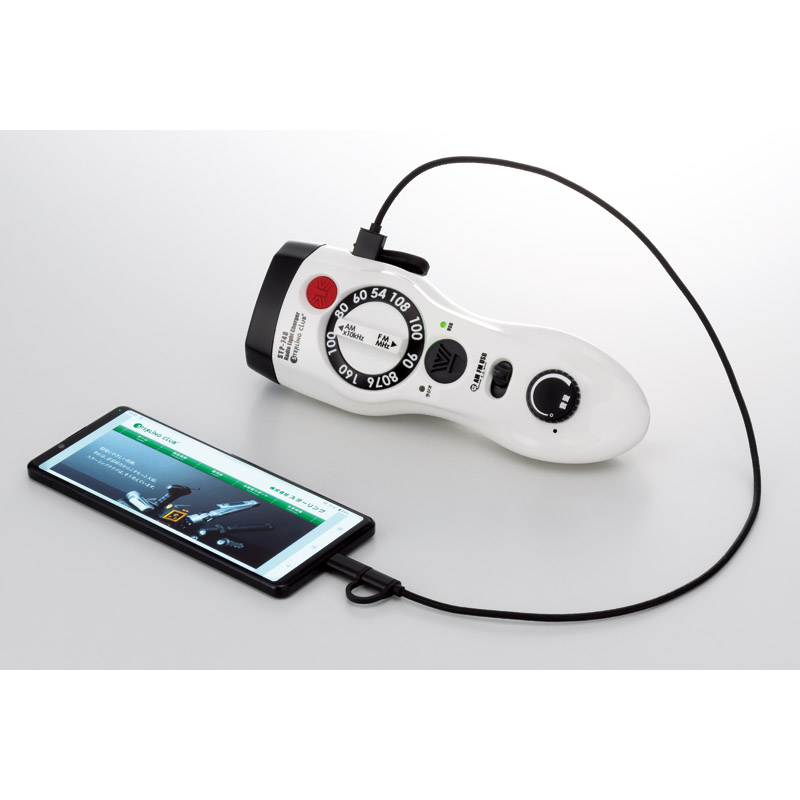 ハイパワーなLEDライトを搭載した新型ラジオライト。ダイナモを廃する事で、ダイナモの出力に制限されていたLEDライトとスマホ充電の機能を大幅にアップしました。2in1充電ケーブルが付属しています。●LEDライト(強/中/弱)●サイレン(点滅灯連動)●ラジオ(AM/ワイドFM)●スマホ充電機能●イヤホンジャック(イヤホン別売)●簡易ランタンシェード●2in1充電ケーブル1本(マイクロUSB/Type-C)付属