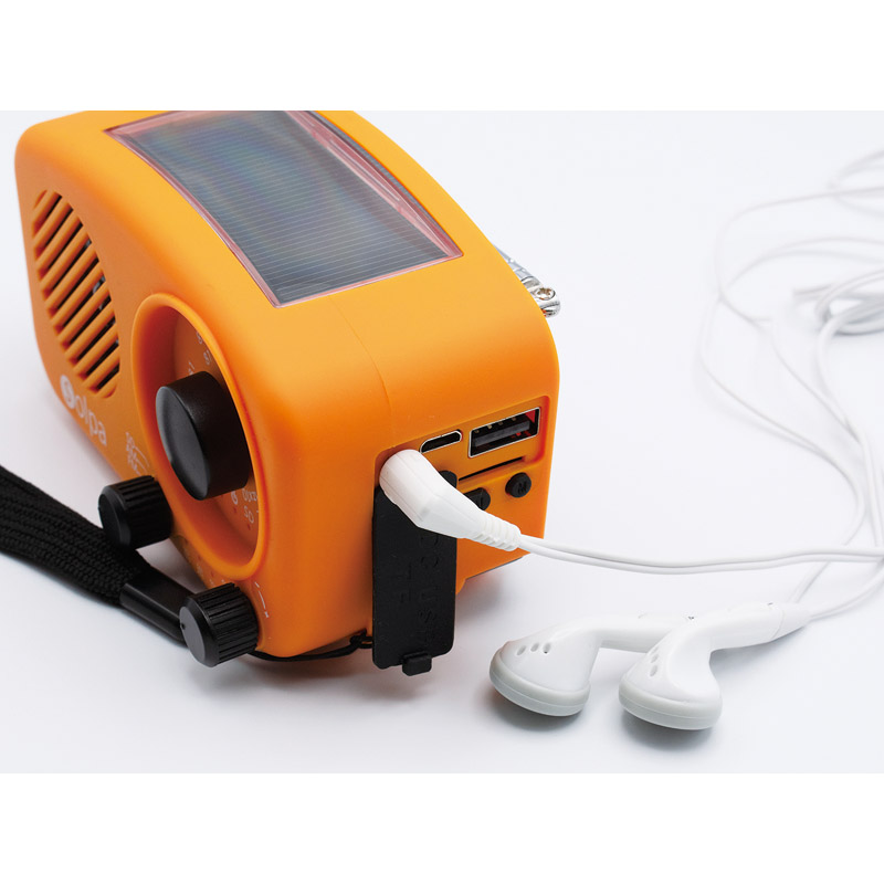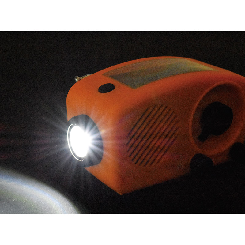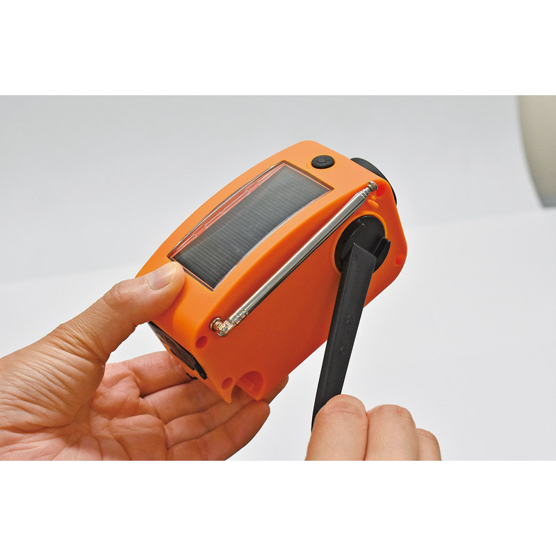 小さいけれど「もしも」に頼れる1台4役。普段使いも非常時も活躍する多機能ラジオ。●AM/FMラジオ:使いやすいアナログチューナー。ワイドFM対応。●懐中電灯:明るさ67ルーメン相当。頼もしい明るさです。●蓄電池:2000mAhの蓄電池を搭載。スマートフォンの充電も安心です。●音楽再生:SDカードに保存したMP3ファイルの再生に対応。●3WAY充電:USB/手回し/ソーラーの3通りの充電方法に対応。●大音量の内蔵スピーカー:大音量の3W出力。アウトドアにも最適。●イヤホン端子搭載:周囲に配慮しながらラジオ・音楽を聴くことができます。