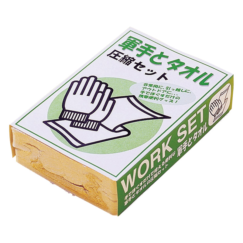 軍手とタオルが一つになった便利な防災グッズです。非常時以外にもアウトドアや旅行時の携帯に最適。コンパクトなので邪魔にならず持ち運び、保管に便利です。会社、車などに常備しておけば、いざという時に役立ちます。手でほぐして、すぐに使用できます。
