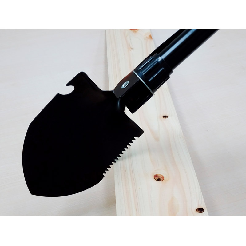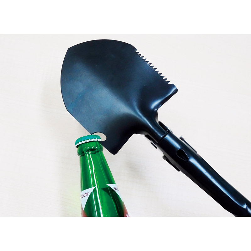 キャンプ、登山、非常用として小さくても役立つ。簡易ノコギリやピッケル、栓抜きも可能な多機能道具です。