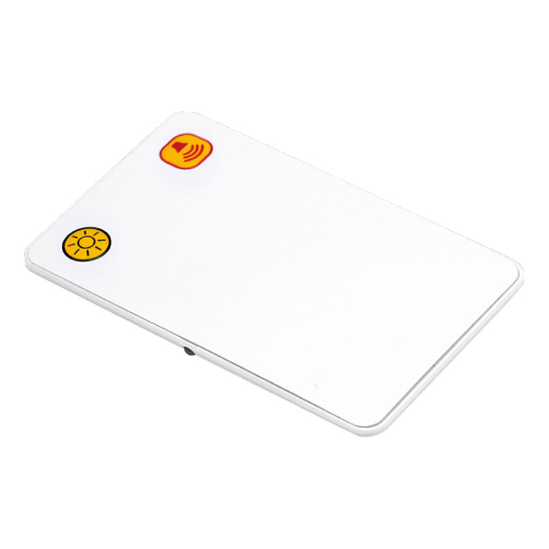 軽量の薄型カードライト。社員証やセキュリティカードと一緒に持ち運べ、緊急時に音で知らせるブザー付き。誤操作防止の主電源スイッチあり。●電池寿命:連続点灯約30時間、ブザー音約30分●音の大きさ:約80dB(1m離れた場所:約55dB)
