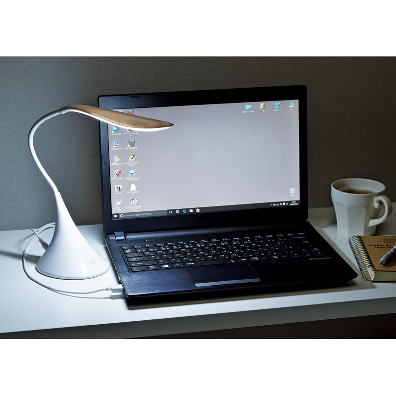 明るさと角度調節自由自在。多段式調光でお好みの明るさにできます。フレキシブルネックを自在に曲げて位置調整。○高輝度・白色最大約140ルーメン○連続点灯時間:約10時間○タッチ式スイッチ