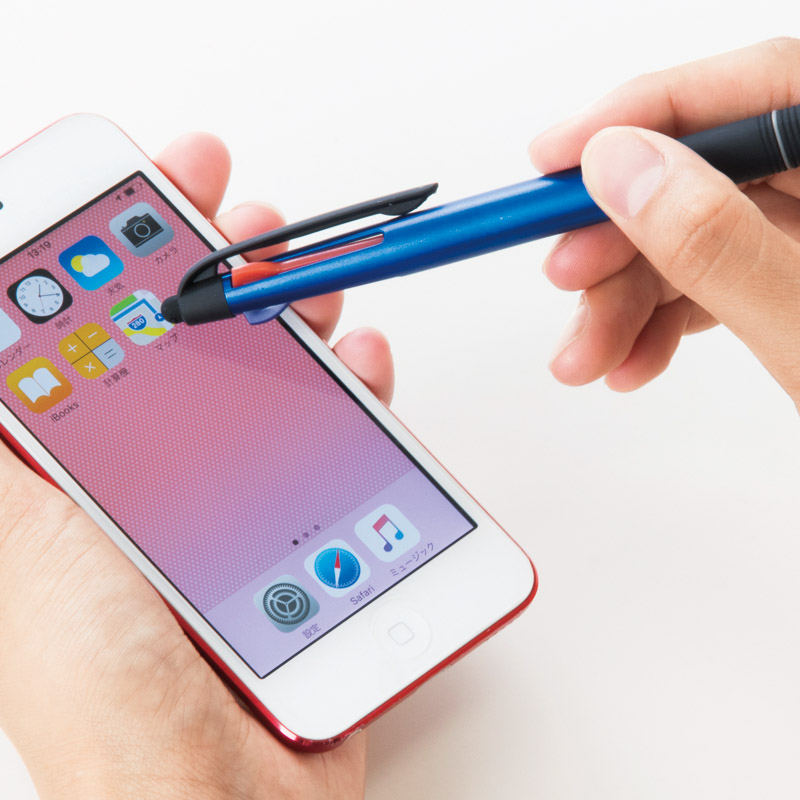 使いやすいスリムサイズの3色ボールペン。タッチペン付き。