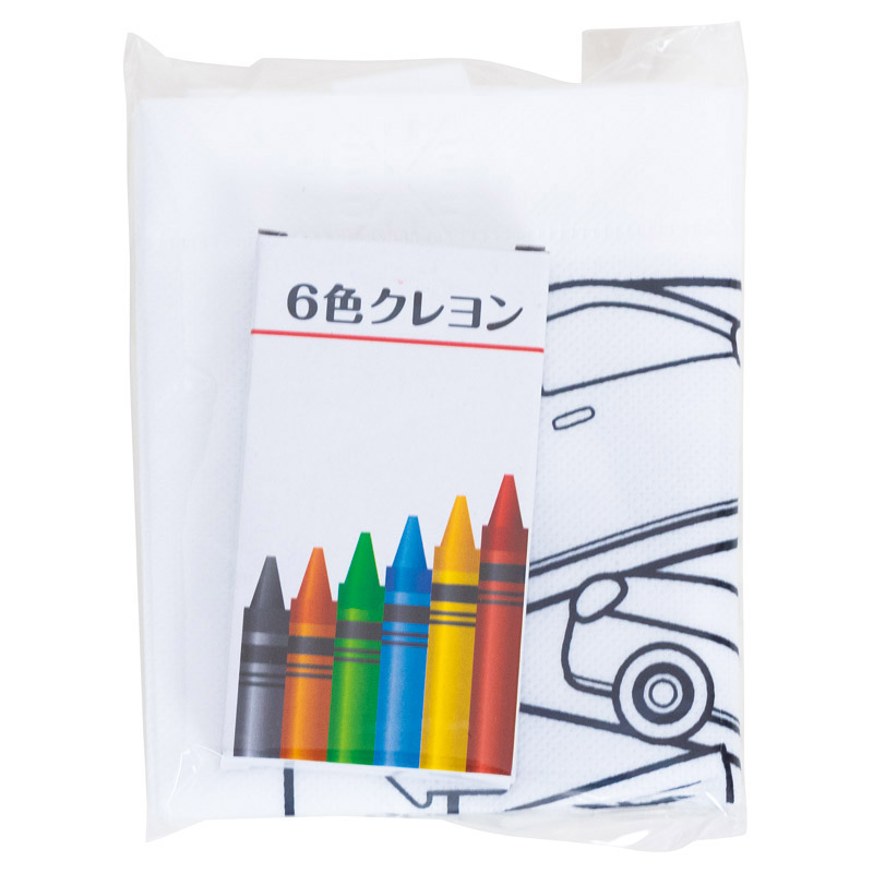 6色クレヨンとぬり絵で遊べるトートバッグのセットです。底マチ8㎝。