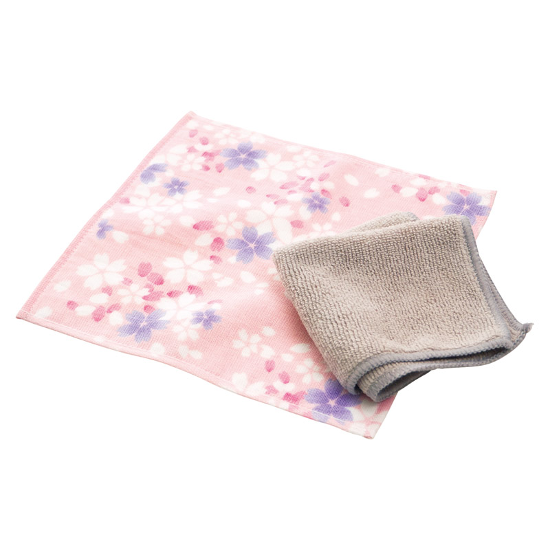 さくら柄のタオルハンカチとマルチに活躍するマイクロファイバークロスのセット。