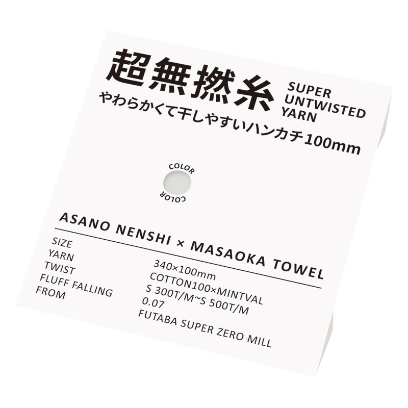 吸水性が良い超無撚糸でコンパクトでエコなサイズを作りました。タグが付いており、フックに掛けて使えます。