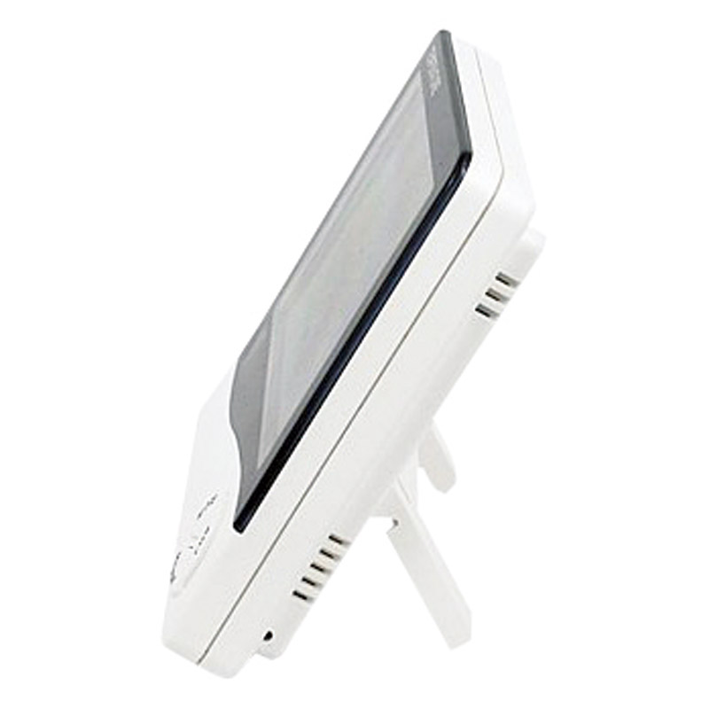 ぱっと見るだけでよくわかる。スタンドで立てて卓上で。フック等に掛けて。日付表示、温度計、湿度計、時刻表示、時報、アラーム機能付き。