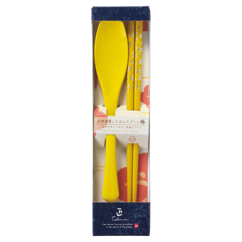 若狭塗のお箸と、先端が平らな形状で口当たりがよく、最後の一粒まですくい易いスプーンとのセットです。