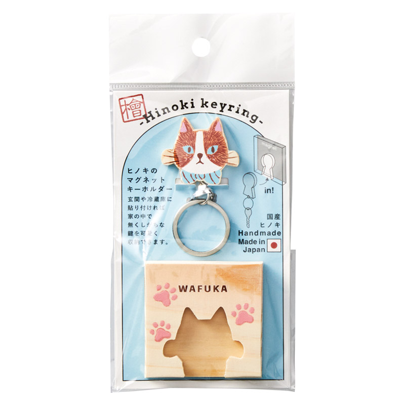 国産ヒノキを使用し、手作りでひとつひとつ作り上げた木製のマグネットキーホルダーです。玄関や冷蔵庫に張り付ければ、家の中で無くしがちな鍵を可愛く収納できます。