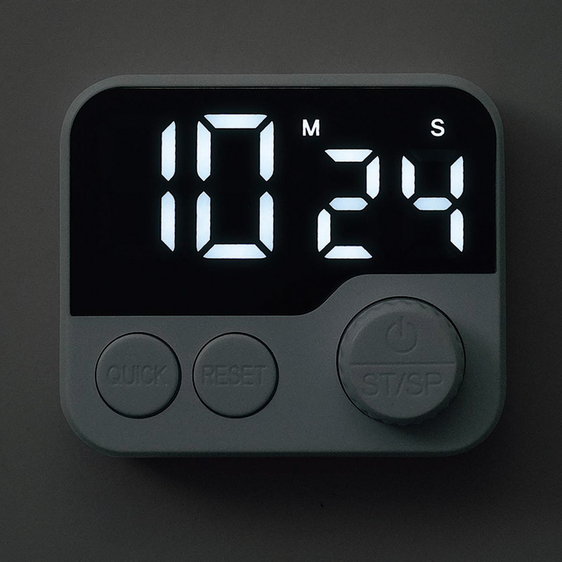 パッと見やすい!はっきり見えるLEDキッチンタイマー。ボタンとダイヤルで簡単操作。