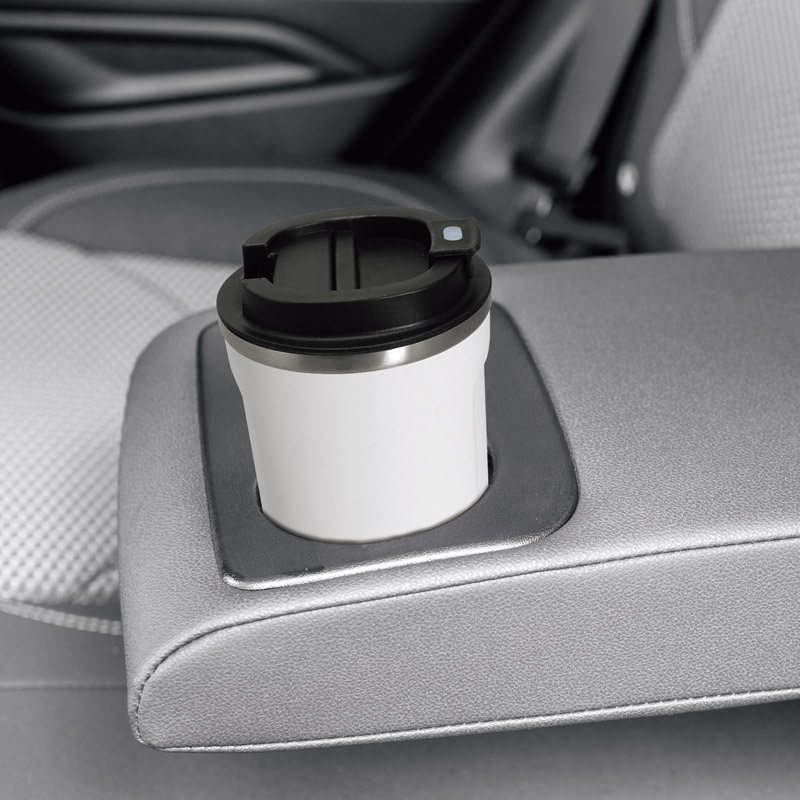 結露しにくい真空二重構造。フタ付きなのでこぼれる心配がありません。屋外の使用でもキズつきにくいパウダーコートです。