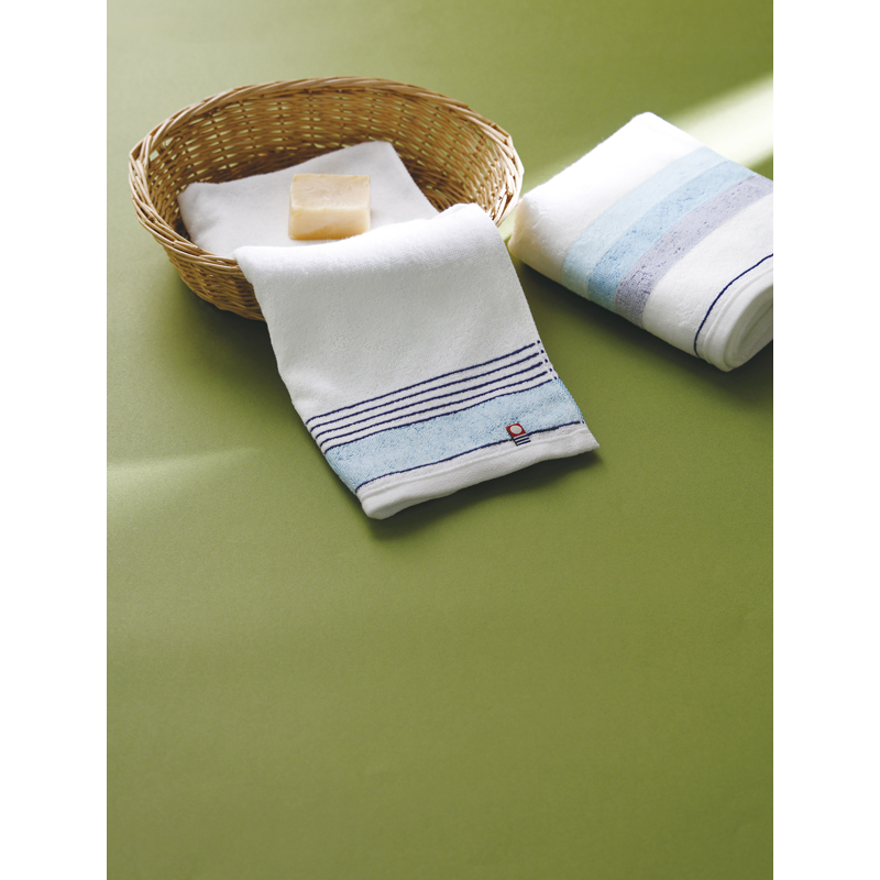 瀬戸内の美しい海をイメージしたタオル 瀬戸内海の穏やかな美しさを表現した紺、青、水色のボーダーデザイン。いつでもさわやかな日常のアイテムとして、さりげなく暮らしに馴染みます。