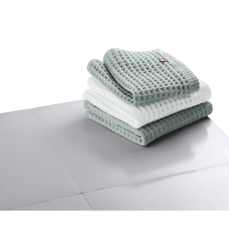 美しさと使い心地の良さを兼ね備えた、立体的な織柄の今治製タオルセット。「ワッフル織」と呼ばれるマス型のこの組織は、さらりとした肌触りと優れた吸水性が特長です。使っていくうちにボリュームが増して、ふんわりしていた感触が「ふっくら」に変わります。