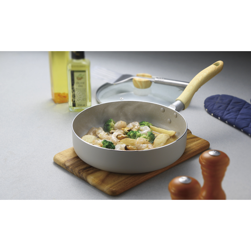 ホペア IH対応ガラス蓋付マーブルワイドパン24㎝