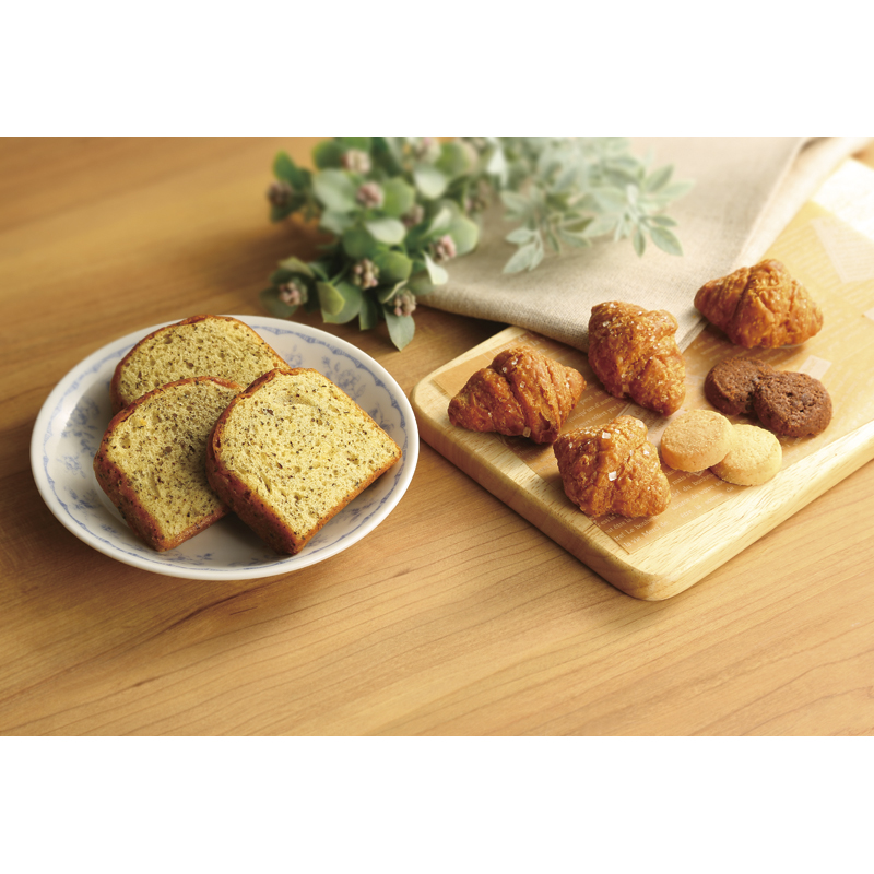 ひとくちサイズのクロワッサンとひとくちクッキーなどのギフトセットです。軽い食感なので、コーヒーや紅茶のお供にどうぞ。