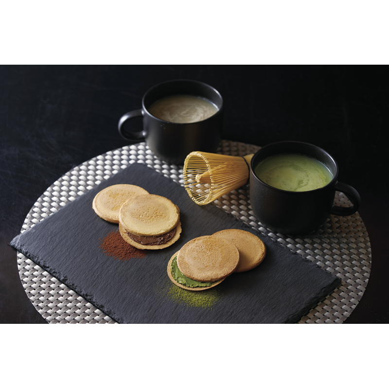 ログイン宇治抹茶と焙じ茶の香り高いオーレ、サクッと軽いゴーフレットは抹茶とチョコレートのクリームをサンドしました。皆が集うカフェタイムにお使いいただけます。