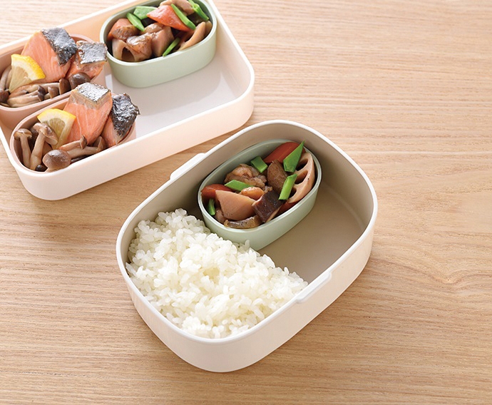 丸型・角型どちらのお弁当箱にも詰めやすい、丸のような四角のような形のカップです