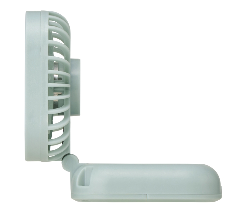 角度調節可能なので卓上置きの際はもちろん、首掛けの時も顔に当たるように調整することもできます。男女問わず使える落ち着いたブルーとグリーンのカラーリングで、それぞれ本体色に合わせた化粧箱でご用意しました。