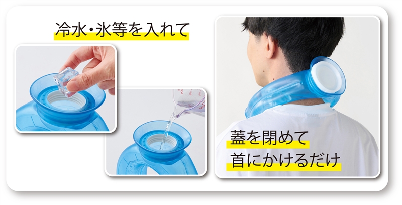 氷と水でひんやり冷却!首元を手軽に冷やせる、暑さ対策に便利なネックリングです。