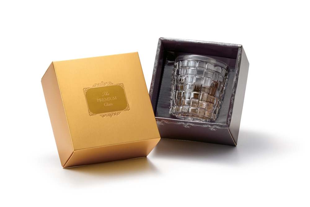 ほどよい重厚感とホールド感。大人のためのロックグラスをプレミアムなゴールドボックスに納めました