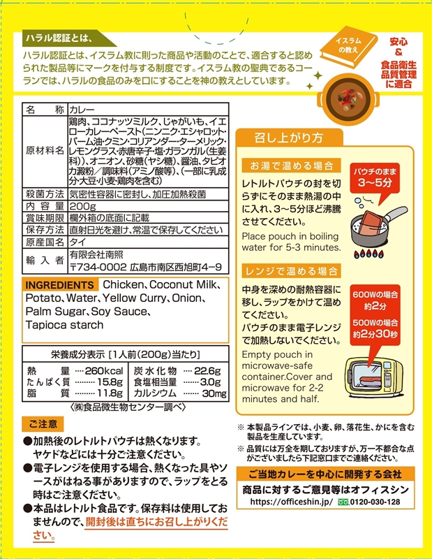 イエローカレーペーストにチキンを加えたタイ製造の本格タイカレー。
