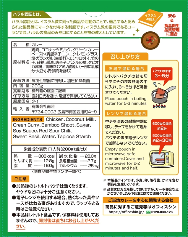 コクと辛味、爽やかな香りが際立つタイのグリーンカレーです。