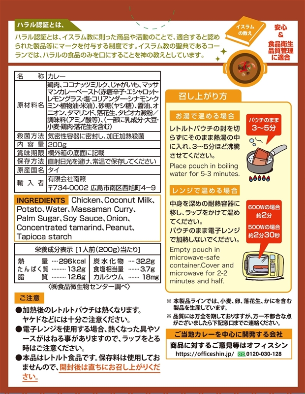 ハラール チキンマッサマンカレー200g1食