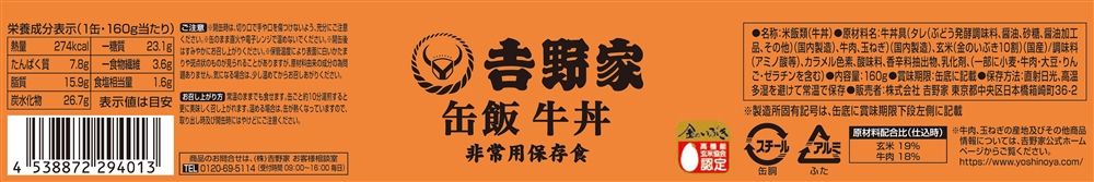吉野家初!非常用保存食缶飯が誕生です。