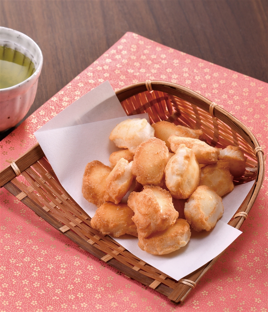国産もち米を使用したおかきです。パッケージデザインには「ありがとうございます」の感謝の気持ちを込め、お渡し時に喜ばれる体裁になっております。おかきについては賞味期間が920日(約2年半)と備蓄品としても活用できます。パッケージ側面にはフードロス削減の「ろすのん」マークを採用した、SDGsにも貢献しうる商品です。