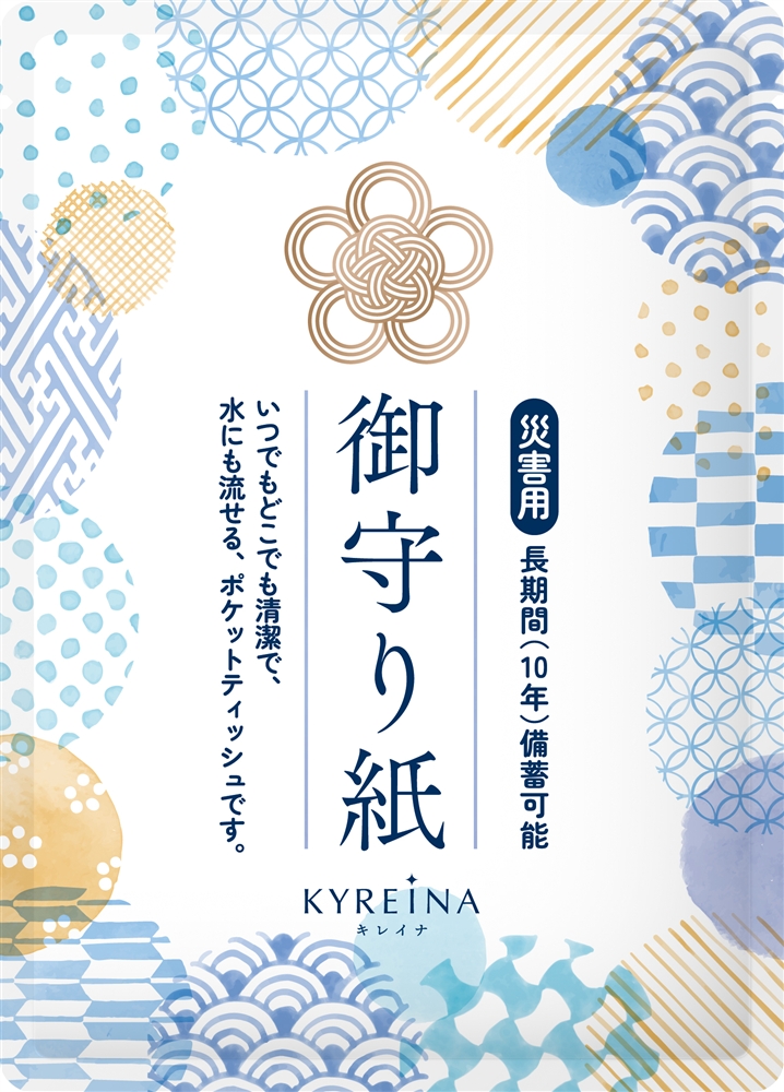 強力フィルムが大雨・津波・湿気・虫食いなどから中身を守る。災害時でも、清潔で安心して使える"キレイの御守り"です。防災教室や防災訓練など防災関連イベントのノベルティにぴったりです。