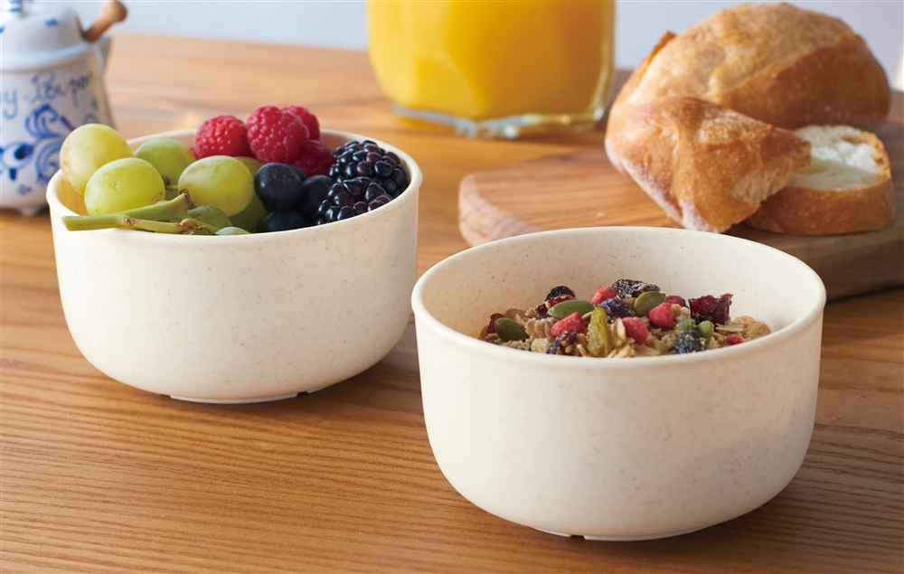 「麦の穂を落とした後の茎」を再利用することで、廃棄物や合成樹脂の使用量を削減しています。軽くて割れないのでお子様がいても安心。サラダやシリアル、フルーツなど何にでも使える使い勝手の良さが魅力です。 ※天然素材配合のため、色に多少のばらつきが生じます。 ※電子レンジ・オーブン使用不可