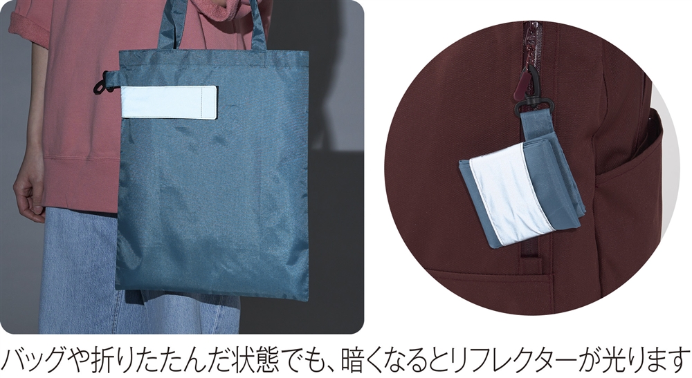 リフレクター(反射材)付きの軽量エコバッグ!夜道を歩く時の安全対策としても。選べる4色展開