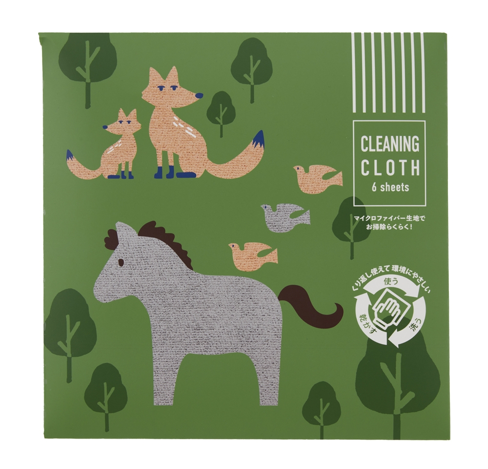 森のどうぶつたちがデザインされたパッケージに、毎日の拭き掃除に使えるマルチクロスが入っています