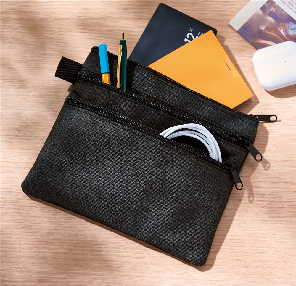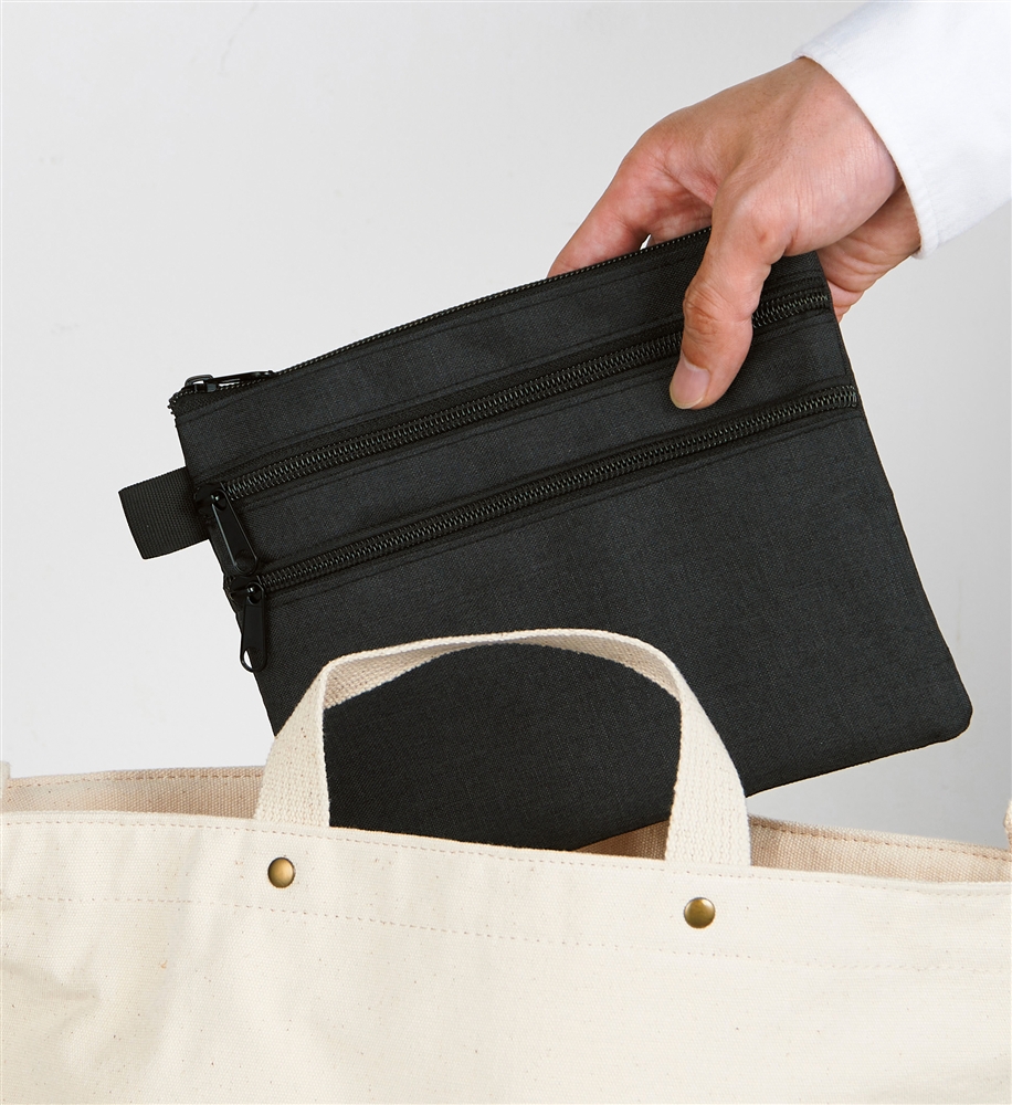 ごちゃつきがちなモバイル周辺機器やステーショナリー類を3つのポケットに整理して持ち運べます。