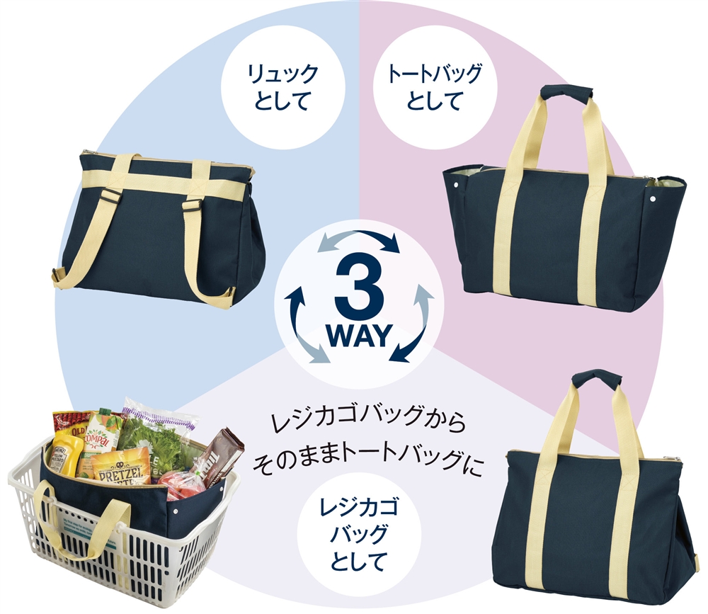 トートにもリュックにも変身!レジカゴにセットできる大容量バッグ。シックなカラーでおしゃれにお買い物!