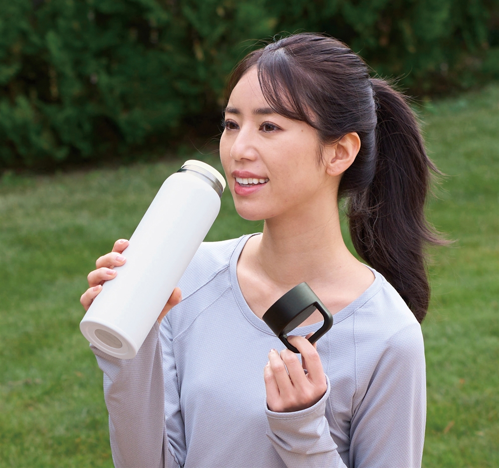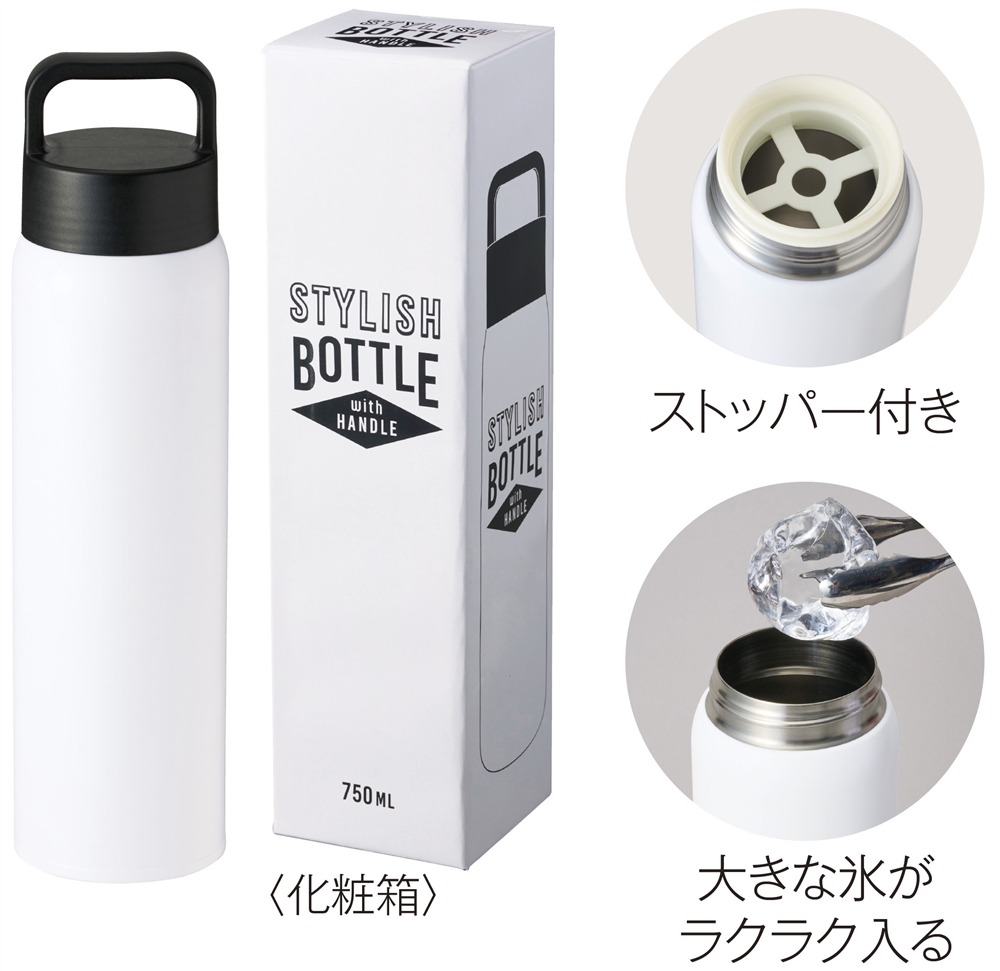 蓋がグッと握って持てるハンドルになっているたっぷり容量の真空ステンレスボトル