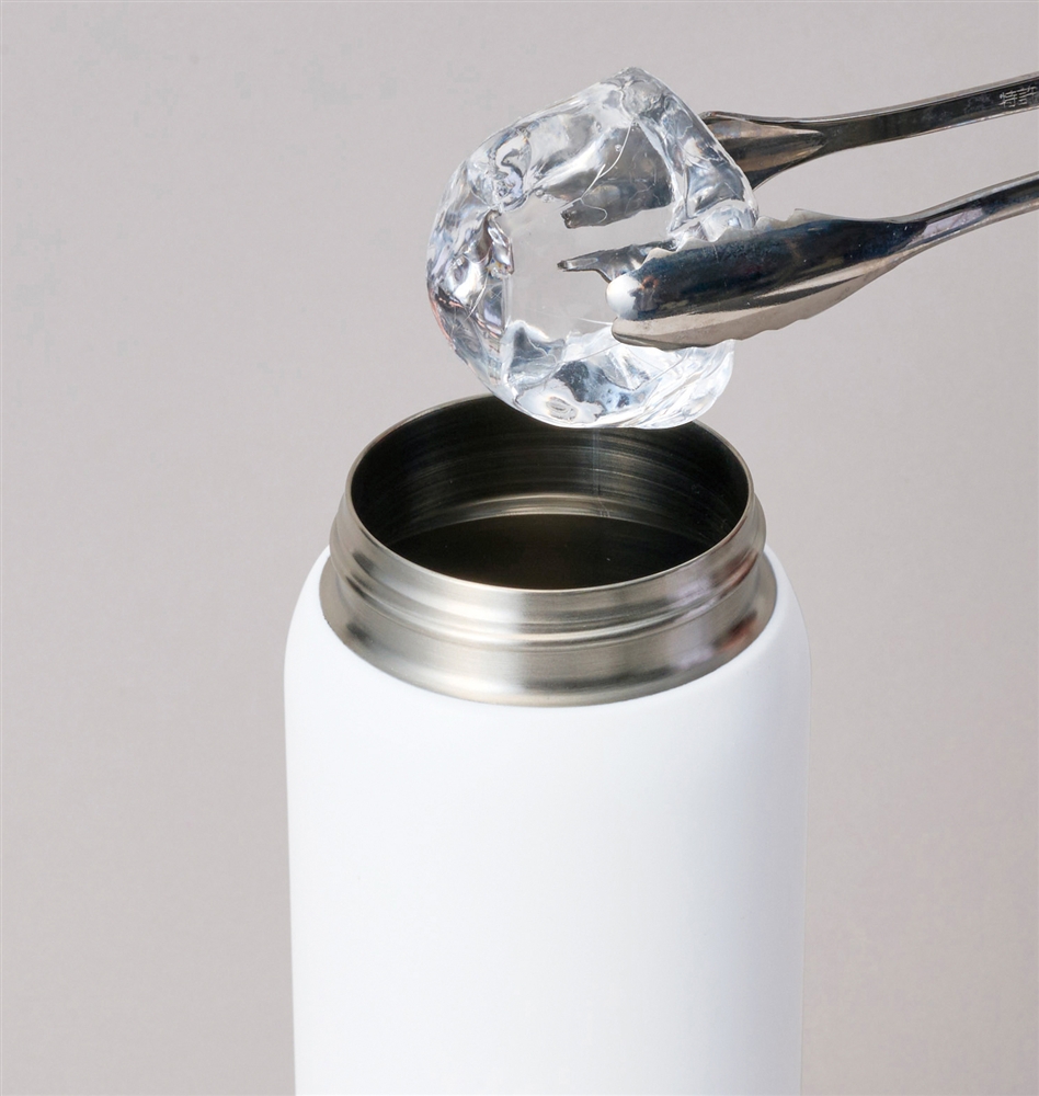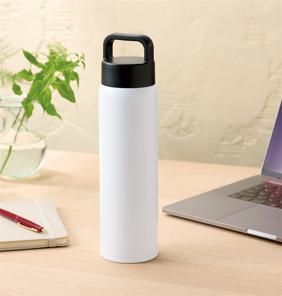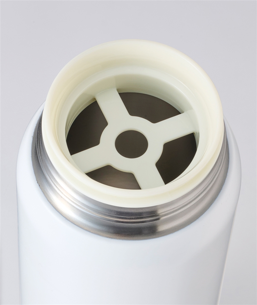 ペットボトルをまるまる1本分移してもまだ入る!スポーツやアウトドアシーンで活躍する大容量サイズ。ブロック氷もらくらく入る広口設計に、氷やティーバッグなどの飛び出しを防ぐストッパー付き。名入れが映えるホワイトボディで周年記念品にも最適です。