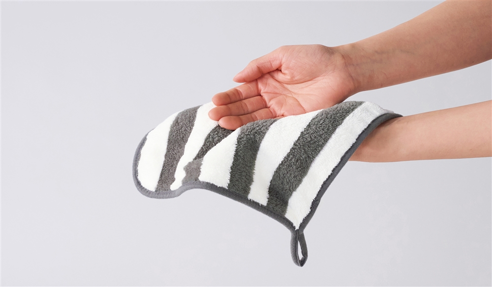 やわらかな手ざわりで乾きやすいマイクロファイバー製のハンドタオルとウォッシュタオル。家族とおそろいで使える2枚セットです。どちらも吊り下げられるループ付きなので、洗面所やベビーカーなどでも使いやすい。