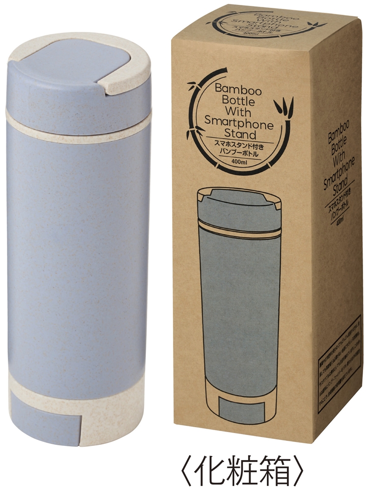 スマホスタンド付きバンブーボトル400ml(ブルー)