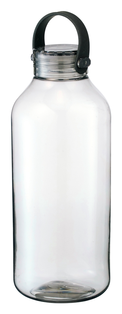透明度が高く、においの少ないポリスチレン製のウォーターボトル。蓋は持ち運びしやすいハンドル付き。名入れ範囲も広く、ロゴなどを大きく印刷すればボリューム感もあいまってインパクトは抜群です。