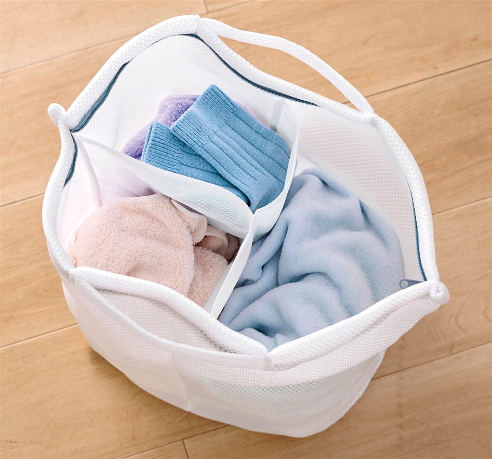仕分け洗いもラクラクな3部屋に分かれたランドリーバッグ!肉厚メッシュで洗濯ダメージjから衣類を守ります