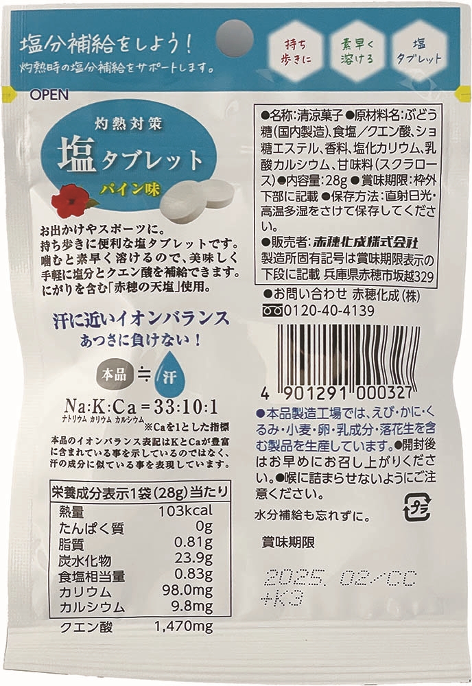 | 備考 | <セット内容> 塩タブレットパイン味28g(約13粒) |