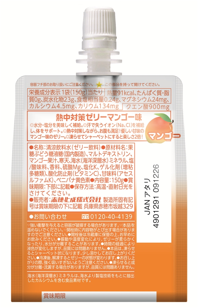 凍らせればシャーベットとしてお楽しみいただける、熱中対策ゼリー飲料です。