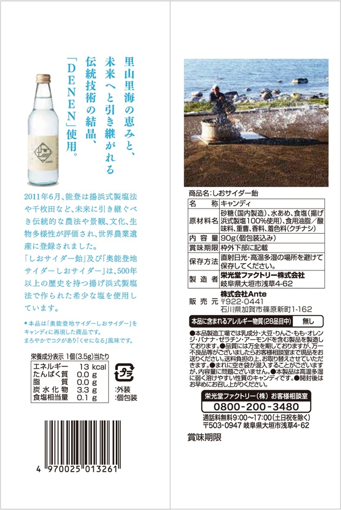 奥能登地サイダー「しおサイダー」味に仕上げた贅沢な飴です。