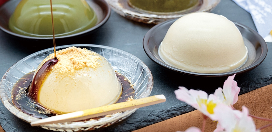 葛の中でも特に高級品として知られる吉野本葛を使用し、独自製法で作る生タイプのくず餅です。