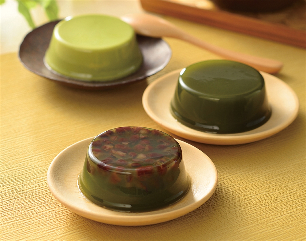 八女茶の風味と小豆の甘さが相性抜群の八女茶寒天ぜんざい、口どけの良い食感でお茶の風味を引き立たせた宇治抹茶ゼリー、抹茶のほろ苦さとミルクの優しい味が特徴の西尾抹茶プリンの3種類を揃えました。