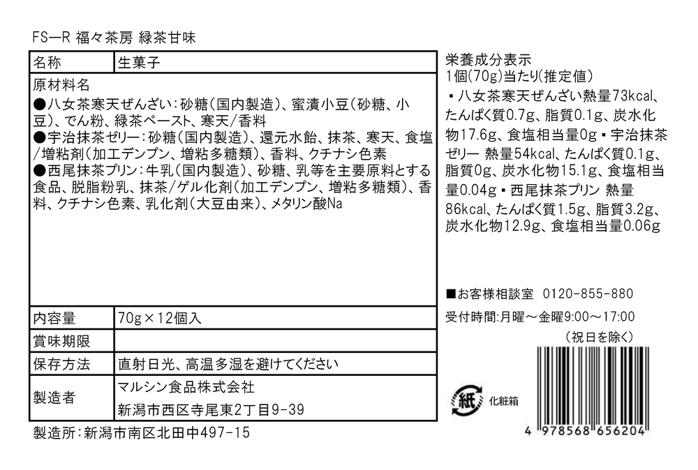| 備考 | <セット内容> 八女茶寒天ぜんざい・宇治抹茶ゼリー・西尾抹茶プリン各70g×各4 |