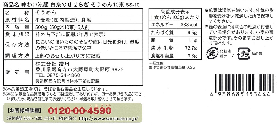 | 備考 | <セット内容> そうめん50g×10束 |
